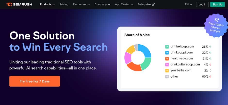 The next era of search is no longer driven by keywords alone. To understand how your brand appears across AI-powered search engines and generative models, explore the capabilities of Semrush One.